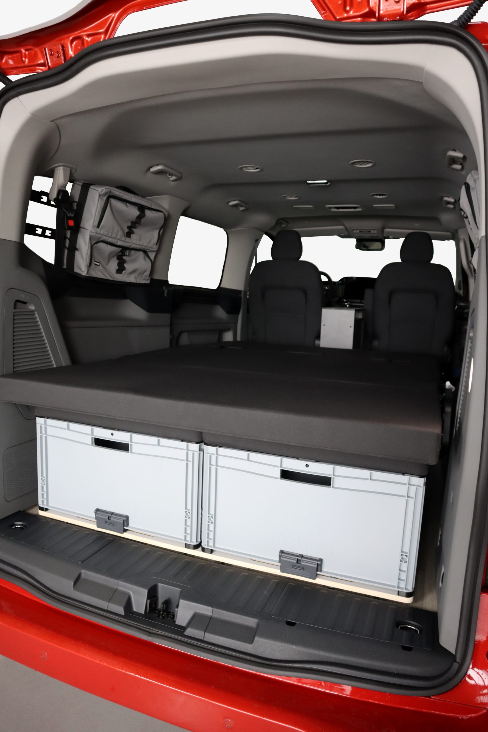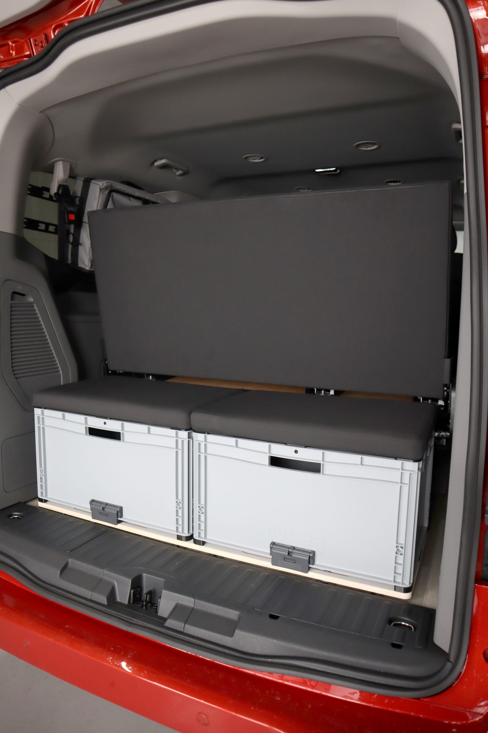 One version is the BoxPort Chair with a padded seat, which can be used as a stool or bed extension at the right height for the RelaX seat. It also provides storage space for items such as kitchen utensils, small appliances, a cool box or even a camper toilet.
